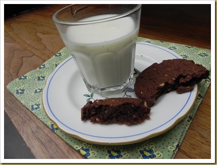 I’ve been at my desk since seven o’clock this morning, taptaptapping away. By tea time, I was desperate for something sweet and there was nothing but oranges in the kitchen. Now I love an orange, but I needed the You-Lift-Me-Up transformative powers of butter and sugar. So I came up with these cookies using what I have in the cupboards, and they’re pretty good. Dark, nutty, not too sweet, quite grown up in fact. I’m eating one now. It’s still warm and I’m thinking how good it would be with vanilla ice cream.